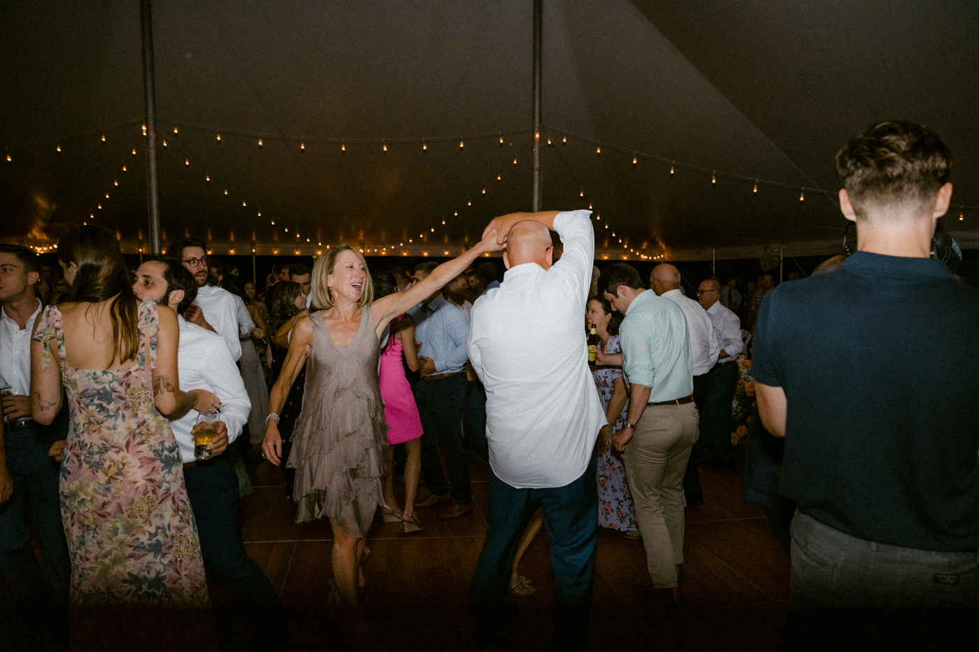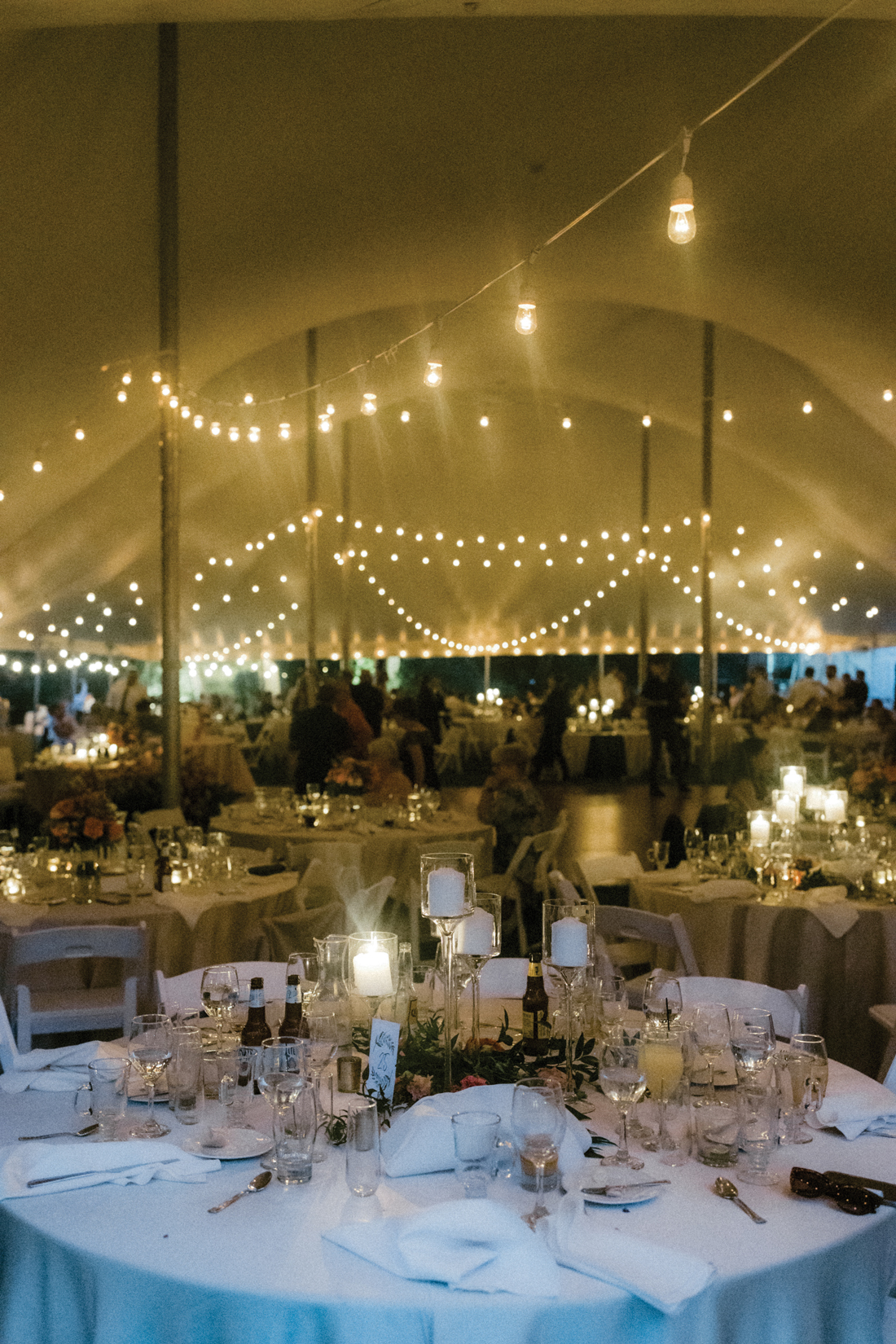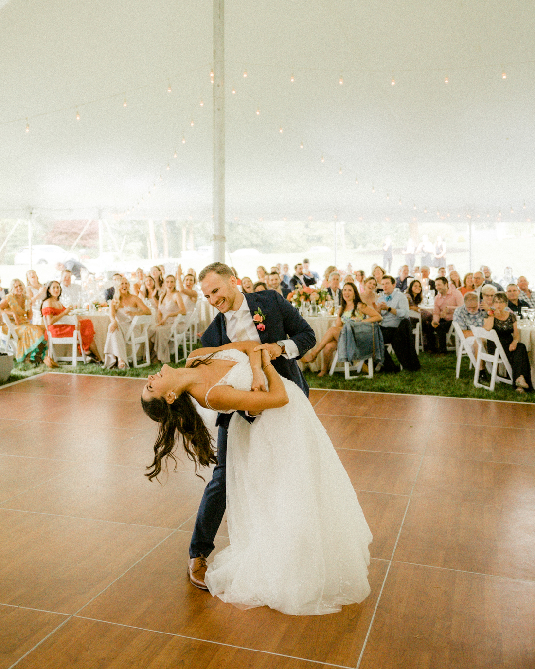 Tommy and Megan survey the tent from the dance floor ahead of the reception. Their first dance was to Shelter From the Storm by Bob Dylan.