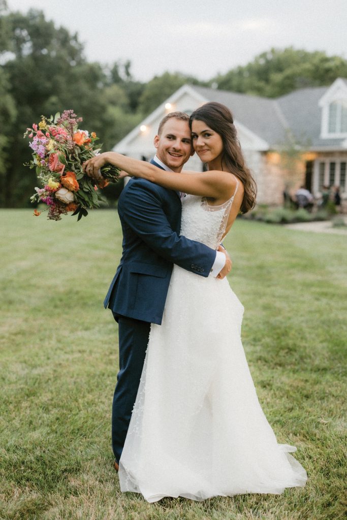 Of course, they couldn’t help but worry about their wedding plans. Ongoing restrictions meant that the guest list would have to be drastically pared back. Megan would have to wear a mask for her walk down the aisle. Family members had concerns about traveling during Covid. “We had a lot going on and a lot to consider,” she explains. In the end, they decided it would be best to postpone the wedding until summer 2021. They were disappointed but resolute.