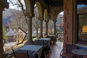 You will also find that the inn’s Libations Lounge beautifully utilizes the atmosphere of the mansion. During the warmer months, you can sit on the veranda and enjoy a delightful view over the grounds as well as the rooftops of the historic district that sit at the base of the mountain.