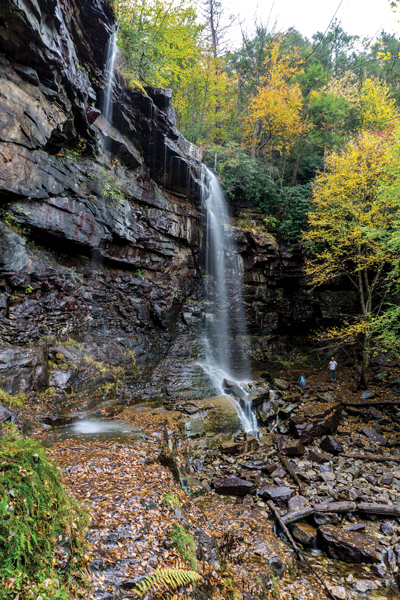 If you’re looking to be active, the D&L Rail Trail runs north from Jim Thorpe to the Lehigh Gorge State Park. Businesses offering bike rentals are plentiful if you want to leave your bike at home. A notable feature as you enter the state park is the Turn Hole Tunnel, a 496-foot-long abandoned railroad tunnel that brings hikers to a unique vantage point overlooking the Lehigh River. Across the river, a trail leads to the very rugged and wild Glen Onoko Falls on Pennsylvania State Game Lands No. 141. While the falls are absolutely stunning, this trail is very challenging and is not recommended for inexperienced hikers.