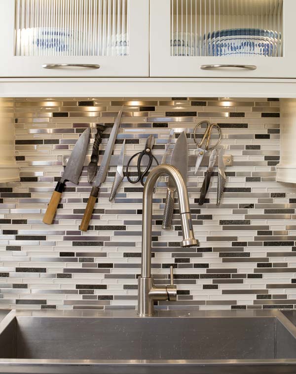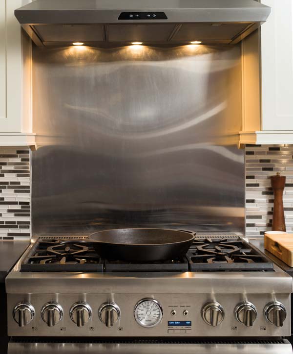 While most people begin the process of designing a kitchen with the cabinetry, Rafe started with appliances, specifically a Thermador gas/convection stove. “And it had to have a stainless backsplash,” he says of his quest to recreate a mini-sized commercial kitchen in his home. In his estimation, a great stove must be accompanied by an equally good dishwasher and refrigerator. “I had a limited amount of space to work with,” he says of the approximate 16×16 square-foot space. “So, I did a lot of research.”