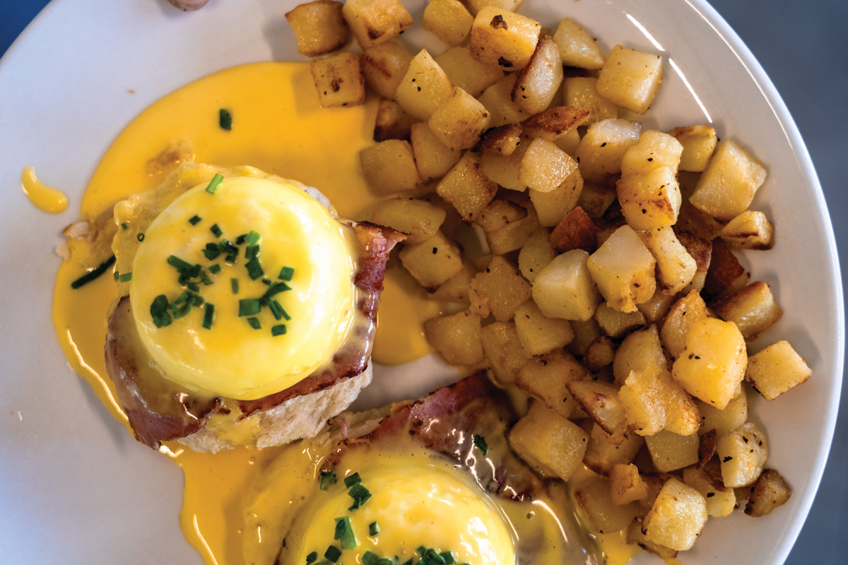 She adds that everything is made from scratch including biscuits, hash browns and hollandaise sauce for eggs benedict. Coffees and teas are from a purveyor in Floyd, Virginia – Red Rooster Coffee, Swallowtail Tea and J.T. Copper Syrups. “I searched to find just the right partners for coffees and teas. I’ve been to their facility, and they’ve been here to train our staff on how to make fantastic beverages,” she explains. (Smoothies and mocktails are also available.)