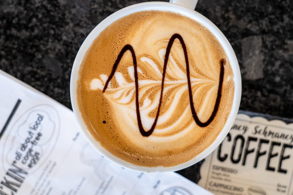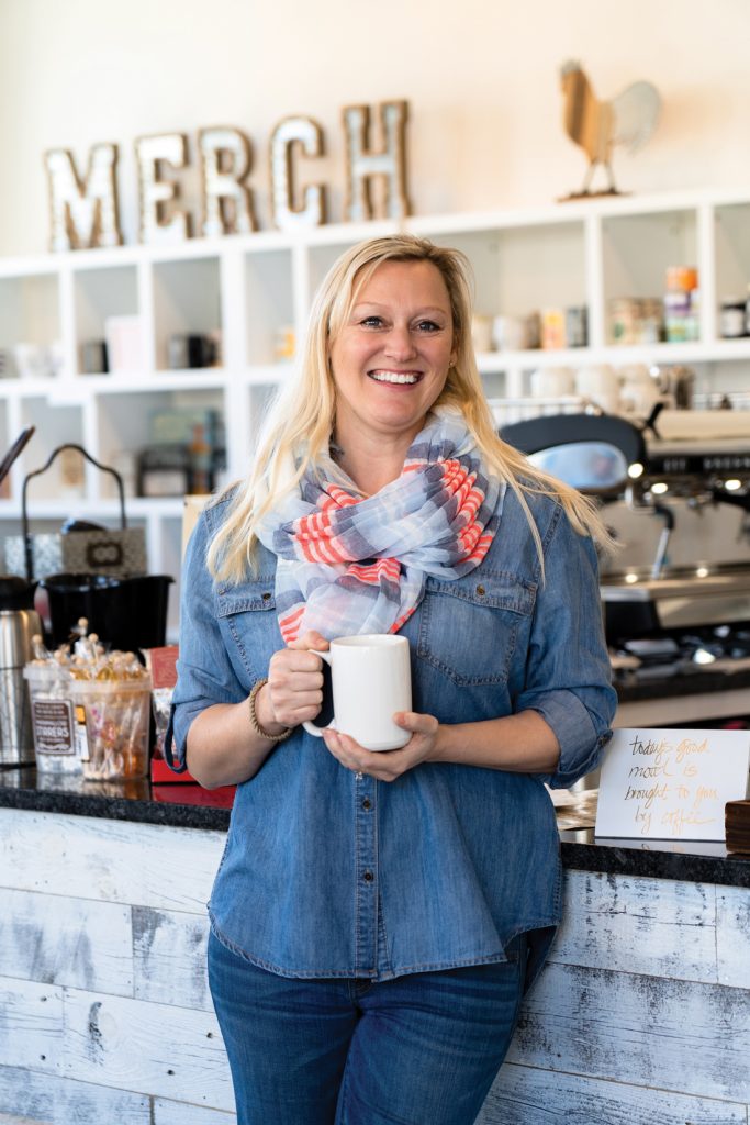 The café seats about 60, while an outdoor patio will seat about 40. There’s also a merchandise area filled with coffee-themed items. “I wanted the atmosphere to be bright, cheery and welcoming. It makes me happy to see people coming in and enjoying the atmosphere and food,” Amy says.
