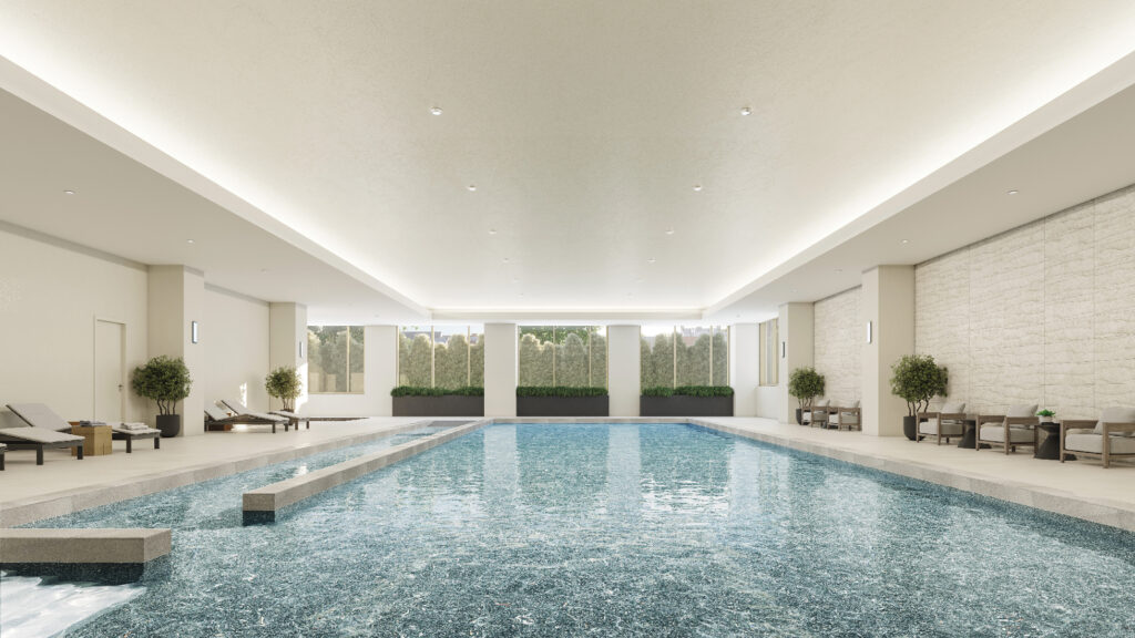 The indoor pool at Mosaic will offer residents an aquatic sanctuary overlooking the heart of Lancaster City.