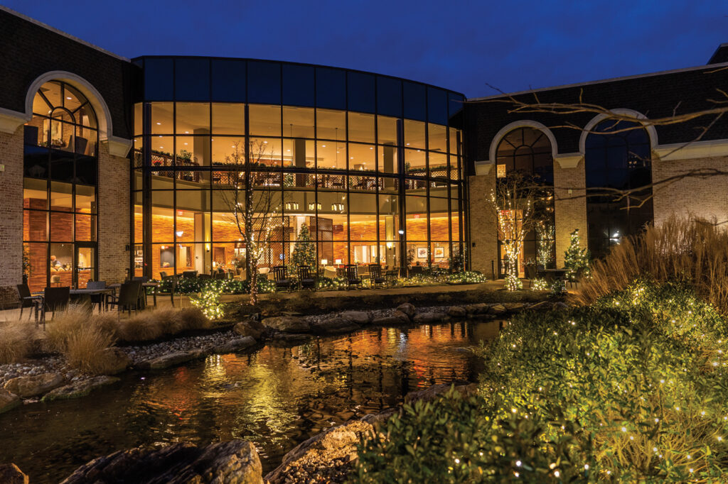 Just how does all this glistening wonder happen at Willow Valley Communities? Rather than by Santa’s elves, maintenance managers, Dave Clingan and Tim Ryan, along with their teams, help create the holiday magic. They get straight to work after Thanksgiving by installing thousands of twinkling lights and hundreds of feet of greens, as well as setting up dozens of trees throughout campus.