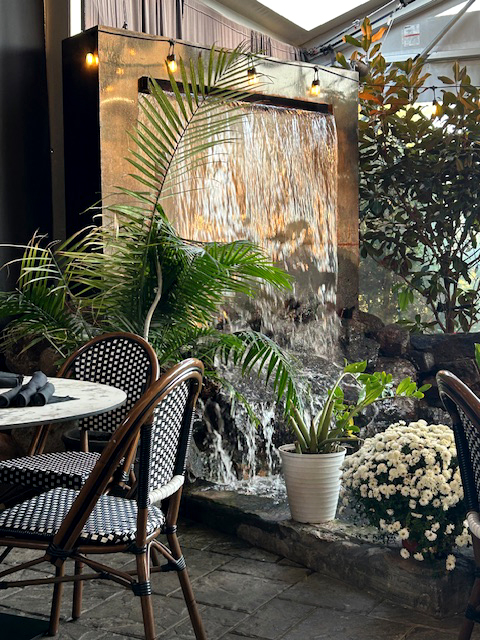 So, the appointed night arrives, and we head for Mohnton. Whoa! As my friends promised, Doc & Bubba’s is cool! A bar at the front of the building delivers a chic vibe. The club-like dining room is wrapped in dark wood and contains a fireplace. There’s a fun indoor/outdoor cigar lounge. Then comes the jaw-dropping moment! You walk into an indoor/outdoor atrium that is outfitted with water features, plants, fire tables, lounging areas, seating and a reclaimed-wood bar. Beyond the atrium is an outdoor patio that offers a gorgeous view of the surrounding hills and woodland. It’s a lot to take in! (A word of warning: If the parking lot is full, fear not. You’ll be directed to a lot about a mile away and will be transported to and from the restaurant via a limo-van.)
