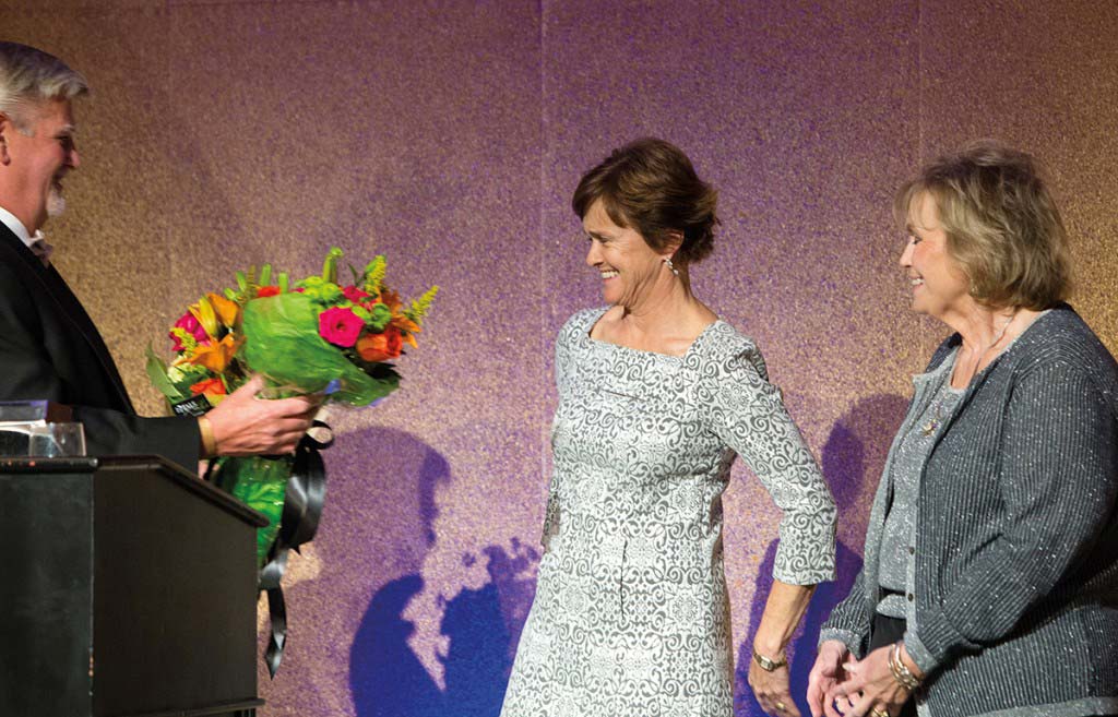 The quietly elegant reception was just the beginning of an evening of surprises, thank-yous and celebration. A crowd was gathering in the adjoining Marriott ballroom for a much bigger party.